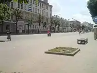 В 2017 году в Могилёве было заключено 2777 браков (7,3 на 1000 человек, средний показатель по Могилёвской области — 7,1) и 1504 развода (3,9 на 1000 человек, средний показатель по Могилёвской области — 3,6). По числу заключённых браков на 1000 человек район занимает 5-е место в области (после Могилёвского, Круглянского, Кричевского районов и Бобруйска), по числу разводов на 1000 человек — 2-е место (после Бобруйска)[34]. В Могилёве существуют микрорайоны: Казимировка, Спутник, Юбилейный, имени В. В. Фатина, Мир-2, Мир-1, Северный, Техноприбор и др. Административно-территориальное делениеМогилёв делится на 2 района. Октябрьский районОктябрьский район был образован 25 декабря 1962 года Указом Президиума Верховного Совета БССР № 356. Территорию района составляет левобережная часть реки Днепр, нечётная сторона улицы Челюскинцев, нечётная сторона улицы Вишневецкого и Рабочий посёлок. Площадь района 5289 га. Проживает в Октябрьском районе около 168 тыс. человек. На территории района расположено 360 улиц и переулков. Основными магистралями района являются: проспект Пушкинский, проспект Димитрова, проспект Шмидта, улица Челюскинцев, улица Габровская и улица Островского[35]. ![]() Улица Крупской. Ленинский районЛенинский район, также как и Октябрьский, образован 25 декабря 1962 года Указом Президиума Верховного Совета БССР № 356. Расположен на правом берегу реки Днепр. Площадь района более 5,5 тыс. га, а население около 210 тыс. человек. Главные магистрали района это: улица Якубовского, улица Крупской, улица Первомайская, проспект Мира и улица Космонавтов. В районе расположены областной драматический театр, областной театр кукол, областной краеведческий музей, музей истории Могилёва, областная библиотека имени Ленина и другие учреждения[36].