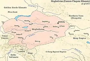 Первый правитель государства Туглук-Тимур (1347—1362) для укрепления власти государства провёл ряд административных, политических и экономических реформ, ввёл ислам, который использовал как орудие управления. В 1360 году он воспользовался нарушением порядка в Мавераннахре и своей легитимностью как потомка Чагатая, чтобы вторгнуться в регион и взять его под свой контроль, тем самым временно воссоединив два ханства. В 1361 году Туглук-Тимур ненадолго завоевал весь Мавераннахр. Однако, несмотря на вторжение во второй раз в 1361 году и назначение его сына Ильяса-ходжи наместником Мавераннахра, Туглук-Тимур не смог удержать прочное влияние в регионе, и моголы были в конечном итоге изгнаны эмирами Хусейном и Тимуром (Тамерланом), которые затем боролись между собой за контроль над Мавераннахром[14].