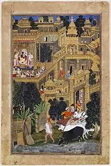 Бабур и его воины посещают индуистский храм Гурх Каттри. 1590-95. Лист из Бабурнаме, Музей Уолтерса, Балтимор