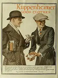 Период активного развития мужской моды продолжался с 1925 по 1932 год. На протяжении 1920-х годов мужчины носили преимущественно короткие пиджаки; для формальных мероприятий надевали консервативные визитку или фрак. В начале 1920-х фасон мужского пиджака был подвержен сильному влиянию униформы: высокая талия, узкие отвороты на пуговицах.