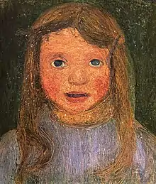 Помимо натюрмортов Паула написала ещё несколько детских портретов, как, например, «Крестьянская девочка на стуле», на котором она отказалась от дифференцирующих линий и форм, или «Дудящая девочка в берёзовом лесу», простым изобразительным языком отразив единство ребёнка с природой. Изображённая в профиль девочка дудит в рожок и широко шагает на фоне густого осеннего леса.