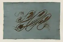 Фирменным знаком линии модерна стала вышивка «Удар бича». Этот термин появился в результате узора на вышивке портьеры 1895 года «Альпийские фиалки», созданного по рисунку швейцарского художника Германа Обриста. В узоре активно выделялись вычурные росчерки стеблей, которые кто-то из критиков сравнил с «яростными изгибами обрушивающегося бича».[7]