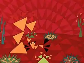Мозаичный рисунок, в котором друг за другом гоняются различные животные. Сначала кошка гоняет мышку, потом собака гоняет кошку, потом собаку гоняет тигр, а в конце в тигра стреляет охотник из дробовика и вся мозаика рассыпается.
