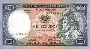 В 1976—1980 годах банкноты Национального заморского банка в 50, 100, 500 и 1000 эскудо выпускались с надпечаткой «Banco de Moçambique».