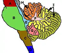 Внутренняя структура мозжечка у рыб отличается от человеческой. Мозжечок рыб не содержит глубоких ядер, отсутствуют клетки Пуркинье.