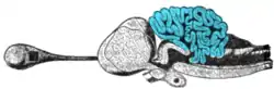 Мозжечок у змей и ящериц, как и у амфибий, располагается в виде узкой вертикальной пластинки над передним краем ромбовидной ямки; у черепах и крокодилов он гораздо шире. При этом у крокодилов его средняя часть отличается величиной и выпуклостью[11].