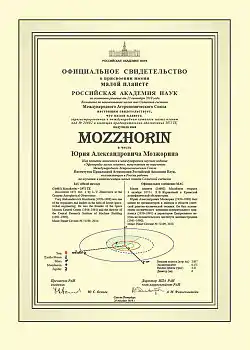 - Федеральное космическое агентство − Малой планете присвоили имя Юрия Александровича Мозжорина