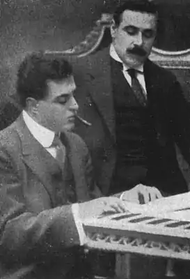 ![]() Вальтер Мокки (справа) с Пьетро Масканьи во время тура по США | |