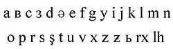 В 1932 году был официально принят латинский алфавит, однако никаких изданий на нём не выпускалось. В 1993 году приняты нормы орфографии, согласно которым редуцированный [ə] обозначается в начале слова и в первом закрытом слоге буквой «ъ»: ърьвяня — /ərʲvænʲæ/, кърга — /kərga/[23][24].