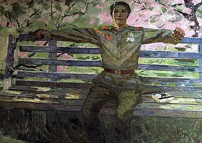 В этой картине образ героя был сопоставлен с цветущим весенним пейзажем.