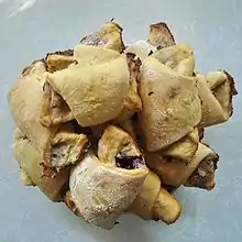 Из холодных закусок также распространены яйца, фаршированные грибами и куриной печенью, студень, мясные и рыбные рулеты.