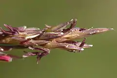 Claviceps purpurea — сумчатый грибок, растущий на семенах молинии голубой.