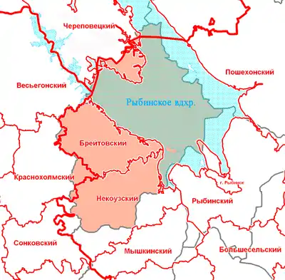 В 1929 году Мологский уезд был расформирован, а на его территории созданы Брейтовский, Ермаковский, Мологский и Некоузский районы. В 1940-х годах часть бывшего уезда была затоплена Рыбинским водохранилищем; Ермаковский и Мологский районы были ликвидированы, Брейтовский и Некоузский остались.