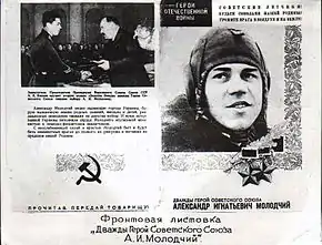 - Память народа :: Документ о награде :: Молодчий Александр Игнатьевич, Герой Советского Союза (Орден Ленина и медаль «Золотая звезда»). pamyat-naroda.ru. Дата обращения: 26 октября 2016.