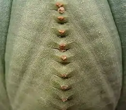 Маленькое суккулентное растение, похожее на кактус, почти в форме шара, напоминающее по виду камень или зелёно-коричневый футбольный мяч, без колючек и листьев, но иногда образует «ветви» или присоски в виде странно выглядящих наборов сфер. Может вырасти до 20—30 см высотой и до 9—10 см в диаметре.
