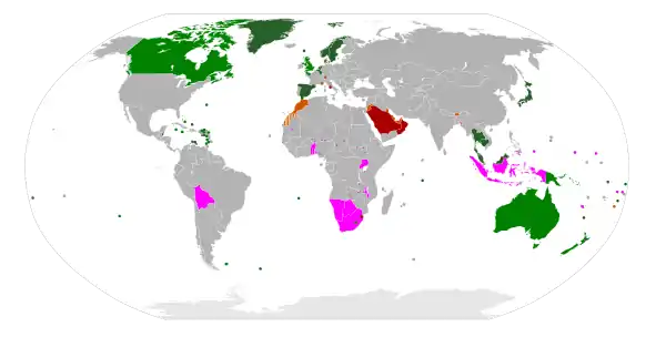 В списках представлены монархии на 2020 год. Отдельным списком представлены доминионы — монархии — бывшие английские колонии, в которых главой государства является королева (король) Великобритании.