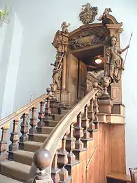 Построена в 1726 г. в переходном стиле от высокого барокко к рококо. Известность библиотеке принесли с большим искусством выполненные работы по дереву (липа), а именно полки, на которых размещено около 100 000 переплетённых в свиную кожу книг, содержащих, в основном, сочинения монахов в виде текстов молитв. Особенно известны десять фигур, выполненных в рост человека и аллегорически изображающих главные пороки с точки зрения монахов-бернардинцев, а именно: гнев, лень и глупость, оригинальничание без смысла, злорадное зубоскальство, хвастовство, агрессивное невежество, чванство, тщеславие, нездоровое любопытство и лицемерие.