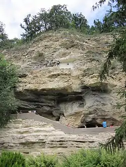 На внешней площадке этого же уровня есть ещё один вход в помещение для захоронений, но он завален сползшей вниз скальной массой. Нижний и верхний, менее сохранившиеся уровни, также представляют собой естественные пещеры, в которых обитали монахи. В нижнем уровне предположительно располагались храм и монашеские кельи, в верхнем — часовня.