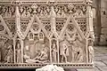 Могилы Педру I (1320—1367 гг.) и Инес де Кастро (1320—1355 гг.), которые сейчас находятся по обе стороны от трансепта, имеют большое значение для церкви и придают великолепие этому месту. Также эти памятники принадлежат к одним из крупнейших скульптур средневековья. Когда Педру I взошёл на престол, он приказал построить эти гробницы, чтобы похоронить его великую любовь — Инес, которая была жестоко приговорена к смерти его отцом, Афонсу IV (1291—1357 гг.). Он также повелел похоронить там и себя. Изображения в гробницах иллюстрируют сцены из истории Португалии и имеют библейское происхождение или прибегают к народным сказаниям. Можно сказать, что, с одной стороны, эта иконография является довольно обширной и освещает многие исторические события, но, с другой стороны, многое из этого весьма спорно.