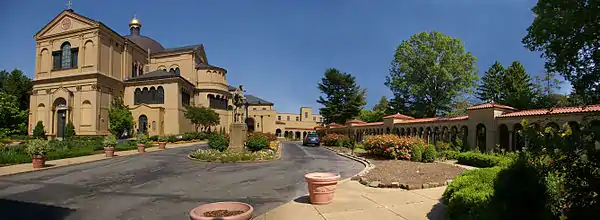В 1897 году конвент францисканцев переехал в Вашингтон, где был куплен участок земли для строительства монастыря. Строительство монастыря началось по проекту архитектора Аристида Леонори, который является также автором проекта собора в Новом Орлеане. Аристид Леонори побывал в Палестине, откуда он привез рисунки христианских храмов, которые стали основой его архитектурного творчества при строительстве францисканского монастыря. Францисканцы построили на территории своего монастыря копии христианских святынь Святой Земли. Строительство храма продолжалось в течение двух лет и оно было построено по подобию Собора святой Софии в Константинополе. 17 сентября 1899 года храм был освящен во имя Гроба Господня.