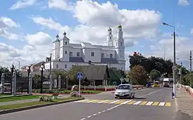 Сохранившийся комплекс включает собор Рождества Богородицы (бывший костёл), входные двери и декоративную галерею по периметру церкви, здание монастыря и ограду с воротами[2]. Костёл представляет собой трёхнефную четырёхбашенную базилику. Обильный декор фасада представлен пилястрами, раскреповками, профилированными тягами, нишами и т. д. К костёлу с северо-запада примыкает трёхэтажное прямоугольное в плане здание монастыря с внутренним двором. Трёхпролётные ворота (брама) в стиле позднего барокко располагаются на оси костёла[1].
