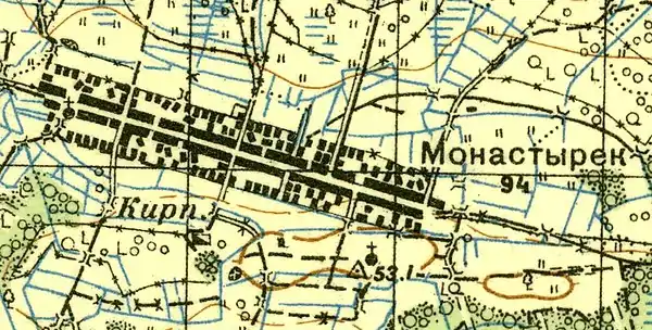 Деревня Монастырёк на карте 1919 г.
