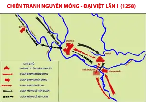 Армия Тугана продвигалась вниз по реке Хонгха, где была встречена дайвьетским войском под командованием Чан Хуан Хая. Последнему удалось победить войско монголов и заставить Тугана повернуть обратно. Второе монгольское войско, бывшее ранее под командованием Согету, было на голову разбито Чан Хынг Дао, который заставил монголов принимать сражения там, где монгольская конница не могла сражаться в полную силу.