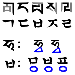 | Родственные | лепча, хангыль (влияние на отдельные знаки) |