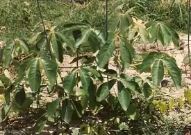 Монгонго может достигать в высоту 15—20 м. Оно растёт на песчаных почвах, на лесистых холмах и между дюнами. Листья пальчаторассечённые, цветки собраны в свободные стройные соцветия, древесина лёгкая палевого цвета. Плоды яйцевидные бархатистые, содержат тонкий слой съедобной мякоти и одно крупное семя. Ядро семени чрезвычайно питательно и имеет название «орех монгонго». Растение распространено в Намибии, Ботсване, Замбии, Зимбабве, Малави и Мозамбике.