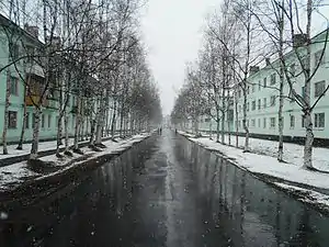 Муниципальный жилой фонд — 28 трёх- и пятиэтажных домов, общей площадью 73,4 тыс. м2, с централизованным водоснабжением и отоплением, а также сезонной горячей водой (в отопительный период, с конца октября по конец мая). В советские годы также были улицы Школьная и Авиационная — 22 двухэтажных восьмиквартирных деревянных дома без удобств, а также улицы Строительная, Лесная и Суворова. В настоящее время деревянные строения разрушены, дальние улицы частично застроены частными домовладениями.
