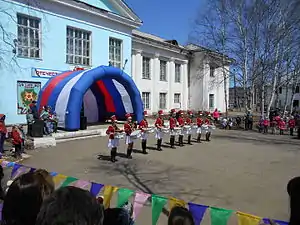 Имеется узел почтовой связи, занимающий половину первого этажа пятиэтажного дома Школьная 2Б. Почтовый индекс — 682882.