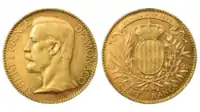 В 1878 году при князе Карле III чеканка монет Монако возобновлена. В 1878—1904 годах чеканились только золотые монеты, чеканка производилась Парижским монетным двором (обозначение двора — рог изобилия).