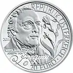 - 20 евро, Австрия (Николаус Жакен) (недоступная ссылка). Euro-Coins.News. Дата обращения: 23 января 2012. Архивировано 28 мая 2012 года.