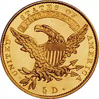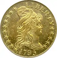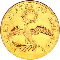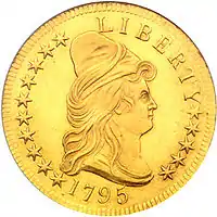 Чеканка золотых монет стала возможной после принятия соответствующего монетного акта конгрессом США в 1792 году[4]. Согласно ему, монетный двор мог чеканить золотые монеты номиналом в 2,5 $, 5 $ и 10 $. Первые золотые монеты были выпущены через 3 года в 1795 году. В акте была установлена также масса монет, качество монетного золота — 91,67 %, а также обязательные элементы дизайна: