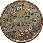 - Classic Head Half Cent 1809 - 1836 (англ.). www.coincommunity.com. — Тираж полуцентовой монеты 1808—1834 по годам. Дата обращения: 12 сентября 2010. Архивировано 20 августа 2011 года.