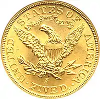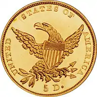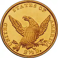 Реверс: белоголовый орлан — геральдический символ США. Гравёр: Вильям Книсс (англ. William Kneass) Чеканка: монетные дворы Филадельфии, Шарлотт, Далонеги и Нового Орлеана. | |||||||||