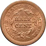 - Braided Hair Half Cent 1840 - 1857 (англ.). www.coincommunity.com. — Тираж полуцентовой монеты 1840—1857 по годам. Дата обращения: 12 сентября 2010. Архивировано 20 августа 2011 года.
