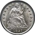 - Seated Liberty Quarter 1838 - 1891 (англ.). www.coincommunity.com. — Тираж 25 центов с сидящей Свободой по годам. Дата обращения: 13 сентября 2010. Архивировано 20 августа 2011 года.