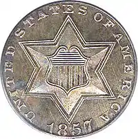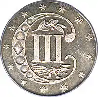 - Фотографии пробных трёхцентовых монет. uspatterns.com. Дата обращения: 18 октября 2010. Архивировано 20 августа 2011 года.