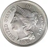 - 1865-89 Nickel Three Cents Coronet Head (англ.). www.coincommunity.com. — История никелевых 3 центов. Дата обращения: 12 сентября 2010. Архивировано 20 августа 2011 года.