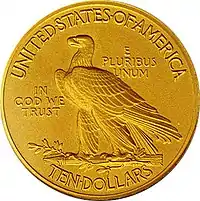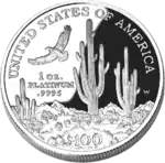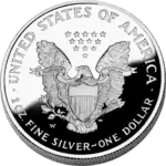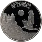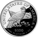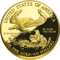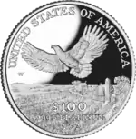 - на реверсе золотых и серебряных монет должно находиться изображение белоголового орлана — геральдического символа США — и надпись «UNITED STATES OF AMERICA»[4].