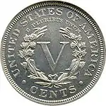 - Liberty V Nickel (1883 - 1913) (англ.). www.coincommunity.com. — Тираж полуцентовой монеты 1883—1913 по годам. Дата обращения: 12 сентября 2010. Архивировано 20 августа 2011 года.
