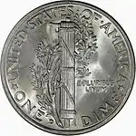 Реверс: венок из оливковых ветвей, обозначение номинала Гравёр: Джеймс Лонгекр Чеканка: монетные дворы Филадельфии, Шарлотт, Далонеги, Сан-Франциско и Нового Орлеана. | |||||||||