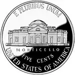 - Nickel Current designs (англ.). Официальный сайт монетного двора США. — Современный дизайн 5-центовой монеты. Дата обращения: 9 сентября 2010. Архивировано 20 августа 2011 года.