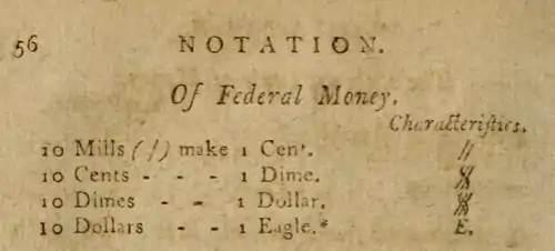 - The American Accomptant: Being a Plain, Practical and Systematic Compendium of federal Arithmetic: In Three Parts / by Chauncey Lee. — Lansingburgh (New York): Printed by William W. Wands, 1797. — P. 56.