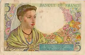 | 5 франков 1942. Дизайнер Люсьен Базо | ||||||||||||