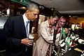 - President Barack Obama watches as First Lady Michelle Obama draws a pint White House Flickr account, 2011-05-23.