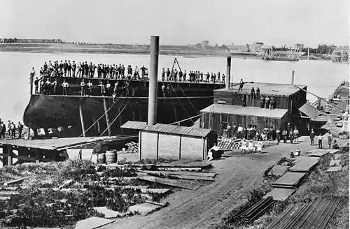- Он был единственным кораблем, построенным на этой верфи. Из-за задержек и проблем с контрактом на постройку мониторов, фирма Бурхесса сочла невыгодным иметь кораблестроительный сегмент и ликвидировала его после спуска на воду монитора.