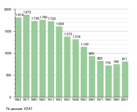 Население составляет 923 человека (2008 г.), плотность населения составляет 63 чел./км². Занимает площадь 14 км². Почтовый индекс — 14024. Телефонный код — 011.