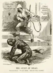 Положение изменилось в 1902 году, когда деятельность Международной ассоциации Конго, разрабатывавшей природные ресурсы колонии, была подвергнута критике торговыии палатами Великобритании. Англичане обвиняли колониальный режим Леопольда в бесчеловечном обращении с туземцаии и, что более важно, в нарушении постановлений Берлинской конференции о свободе торговли и монополизации руководством НГК и связанными с ним концессионерами добычи каучука и слоновой кости, основных экспортных статей страны, что наносило значительный ущерб британским торговцам[2]. В мае 1903 Палата общин при поддержке министерства Бальфура постановила обратиться к державам — гарантам Генерального акта 1884 года, дабы совместными усилиями «добиться принятия мер, способных положить конец бедственному положению этого государства»[2].